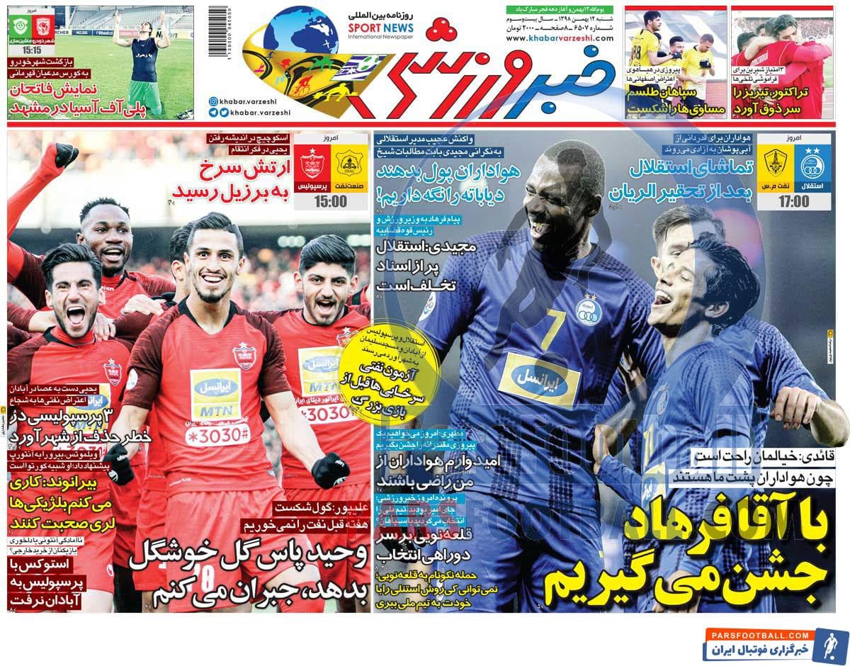 عناوین روزنامه خبر ورزشی شنبه ۱۲ بهمن ماه به شرح زیر است :