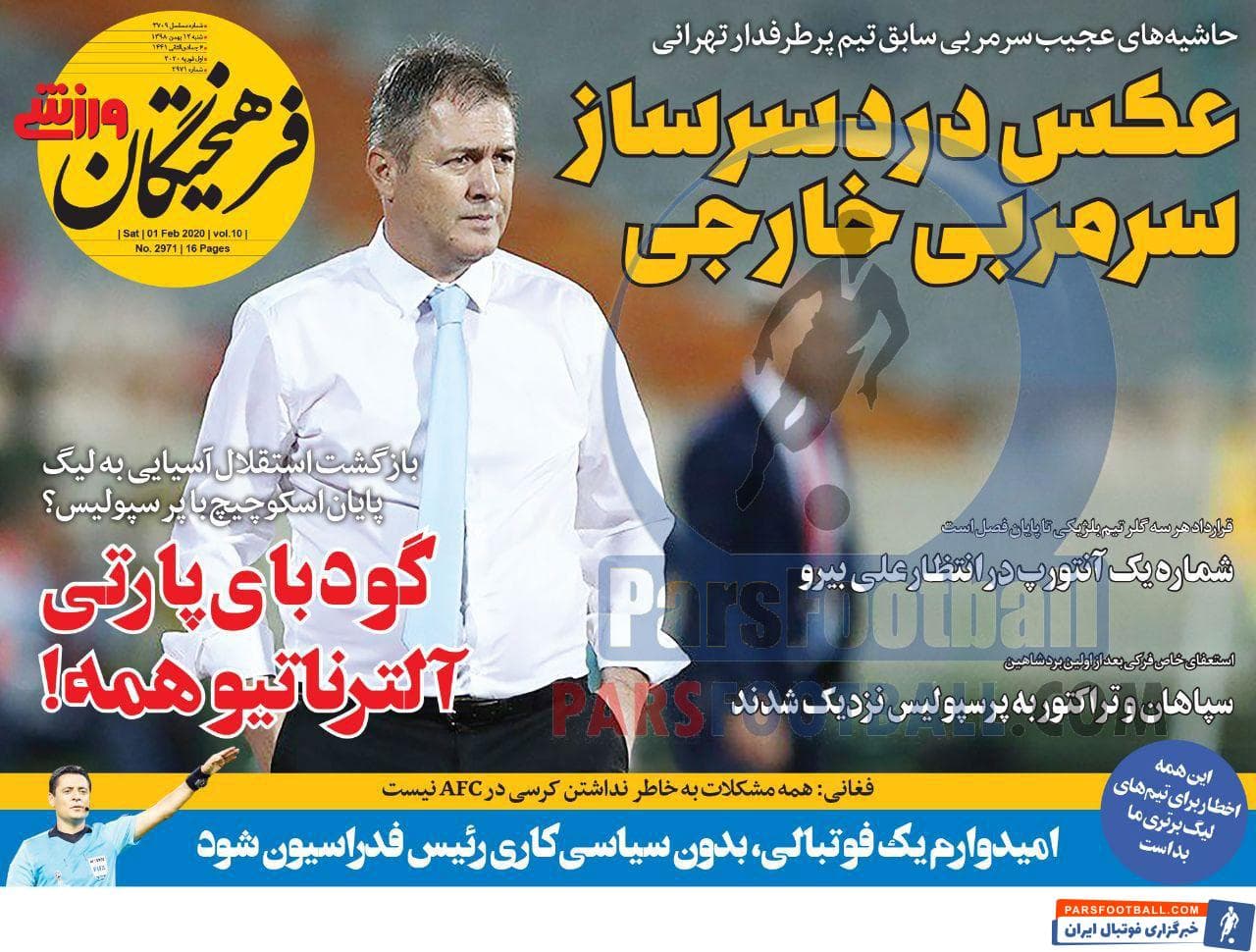 عناوین روزنامه فرهیختگان ورزشی شنبه ۱۲ بهمن ماه به شرح زیر است :