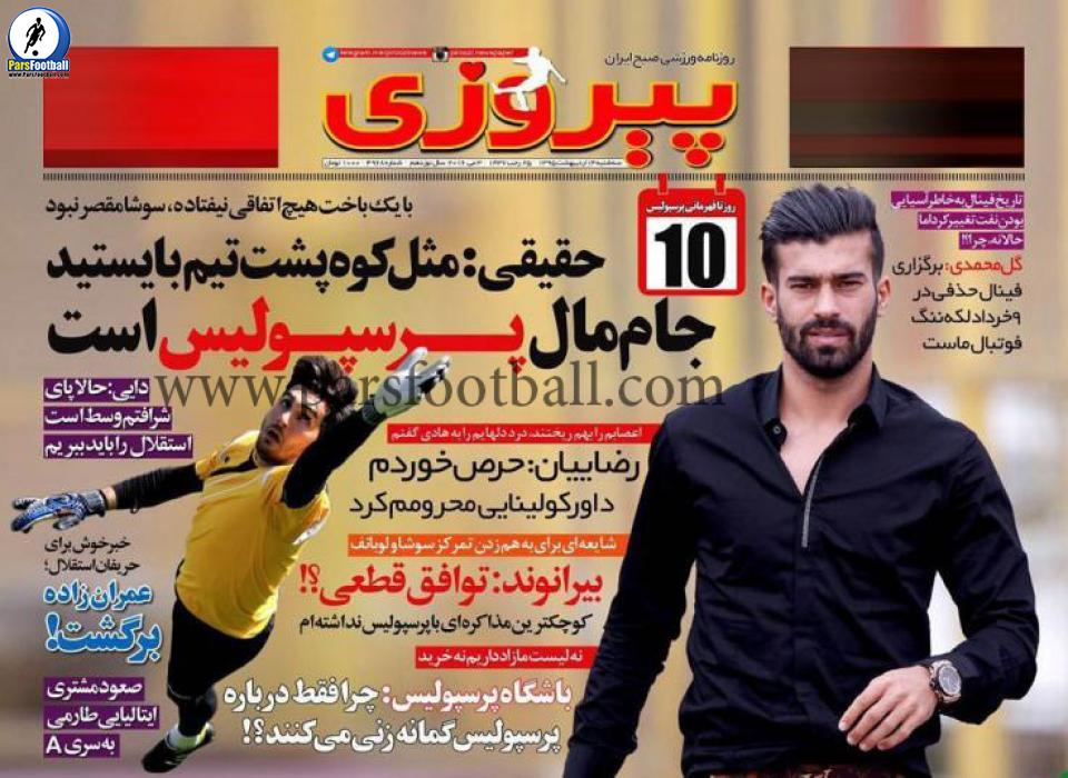 روزنامه پیروزی ۱۴ اردیبهشت | جام مال پرسپولیس است | حقیقی : مثل کوه پشت تیم بایستید