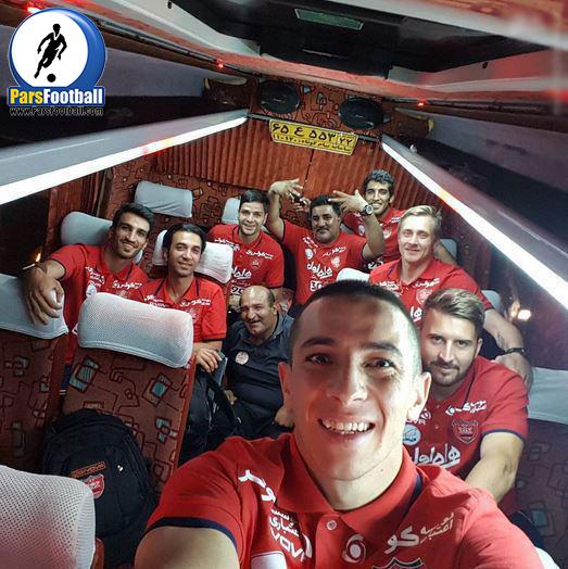 بازیکنان پرسپولیس بعد از پیروزی در اولین بازی لیگ شانزدهم مقابل سایپا در راه برگشت در اتوبوس عکس سلفی گرفتند.