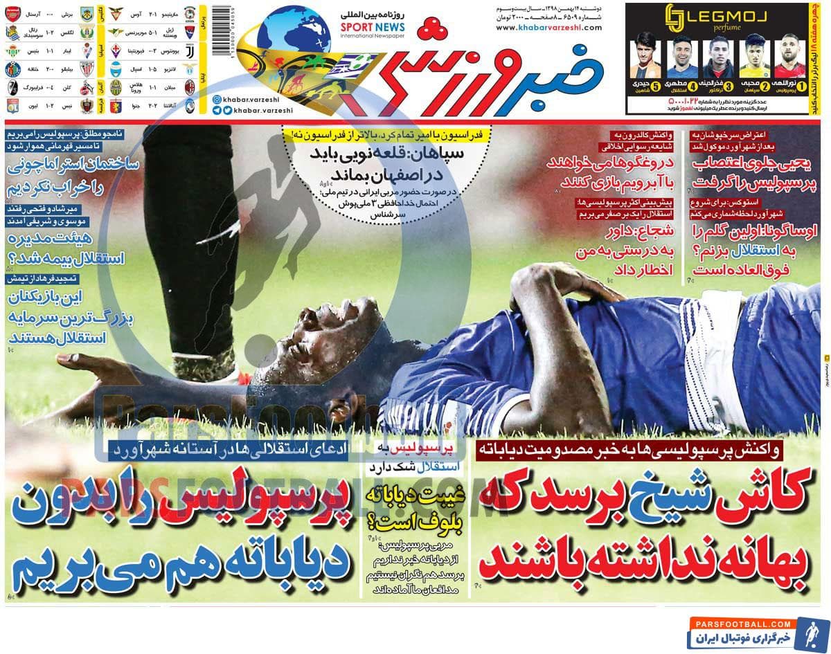 عناوین روزنامه خبر ورزشی دوشنبه ۱۴ بهمن ماه به شرح زیر است :