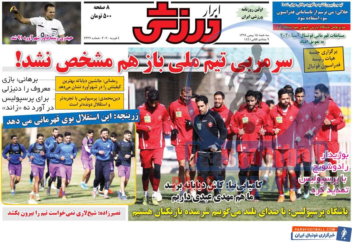 مرور عناوین مهم روزنامه ابرار ورزشی سه شنبه 15 بهمن ماه