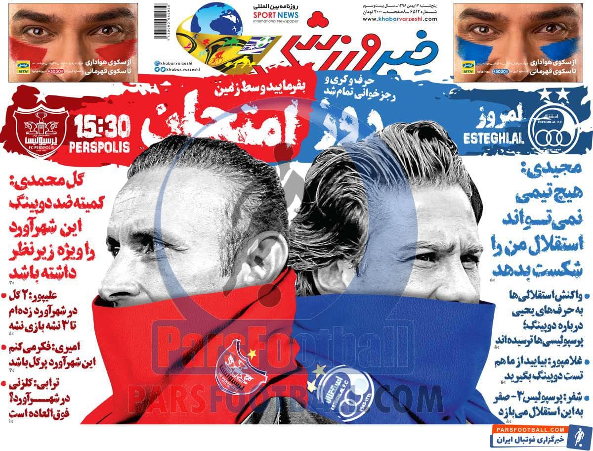 عناوین روزنامه خبر ورزشی پنجشنبه ۱۷ بهمن ماه به شرح زیر است :