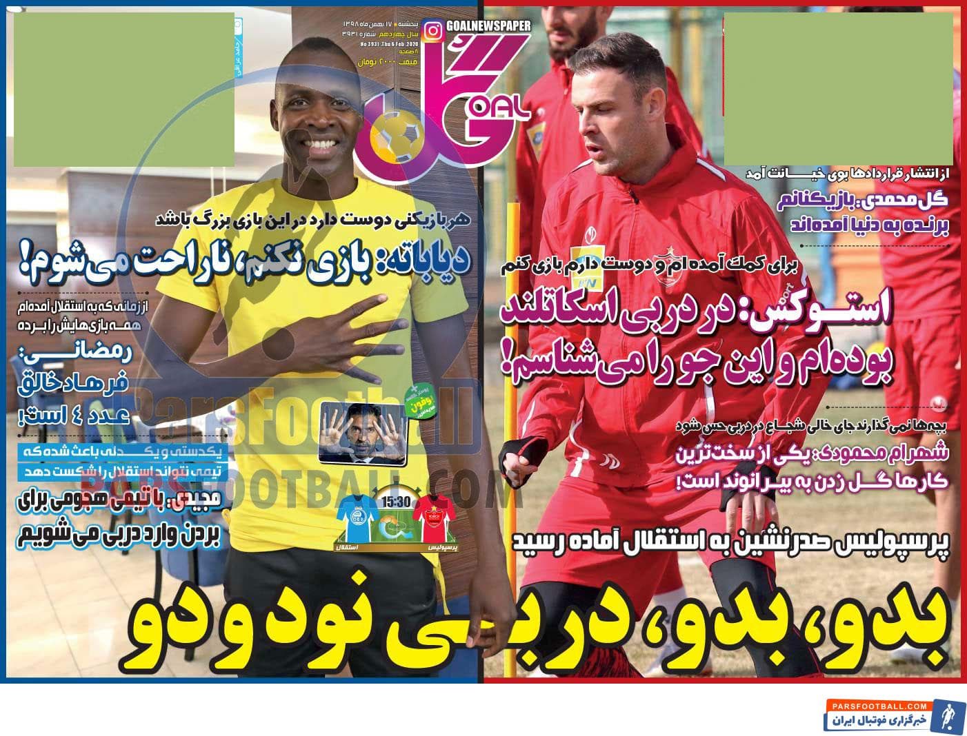 عناوین روزنامه گل پنجشنبه ۱۷ بهمن ماه به شرح زیر است :