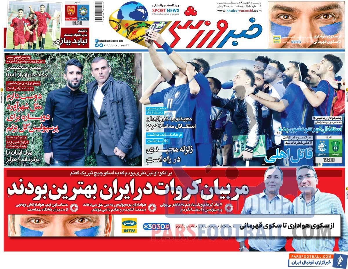 عناوین روزنامه خبر ورزشی دوشنبه ۲۸ بهمن ماه به شرح زیر است :