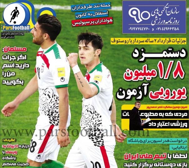 روزنامه نود ۷ مرداد | دستمزد ۱/۸ میلیون یورویی آزمون | مسلمان : اگر جرات دارید اسم من را بگویید