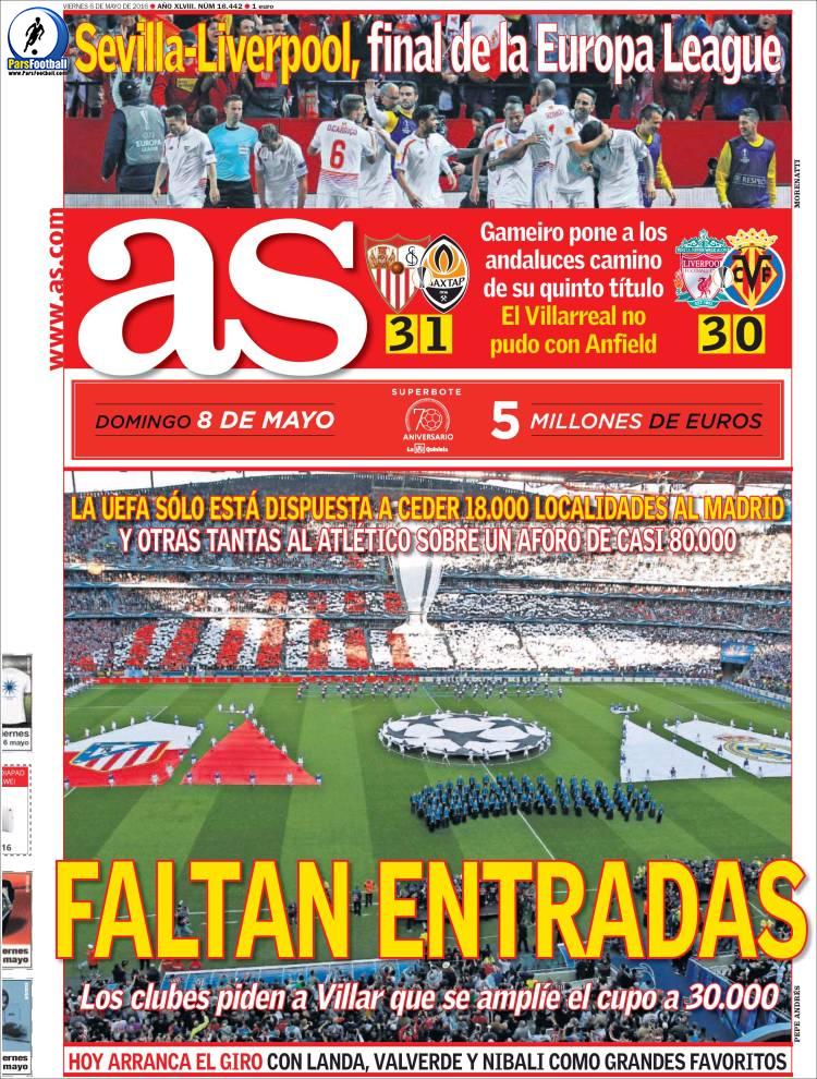 روزنامه آ.اس اسپانیا را در ۶ می مرور خواهیم کرد