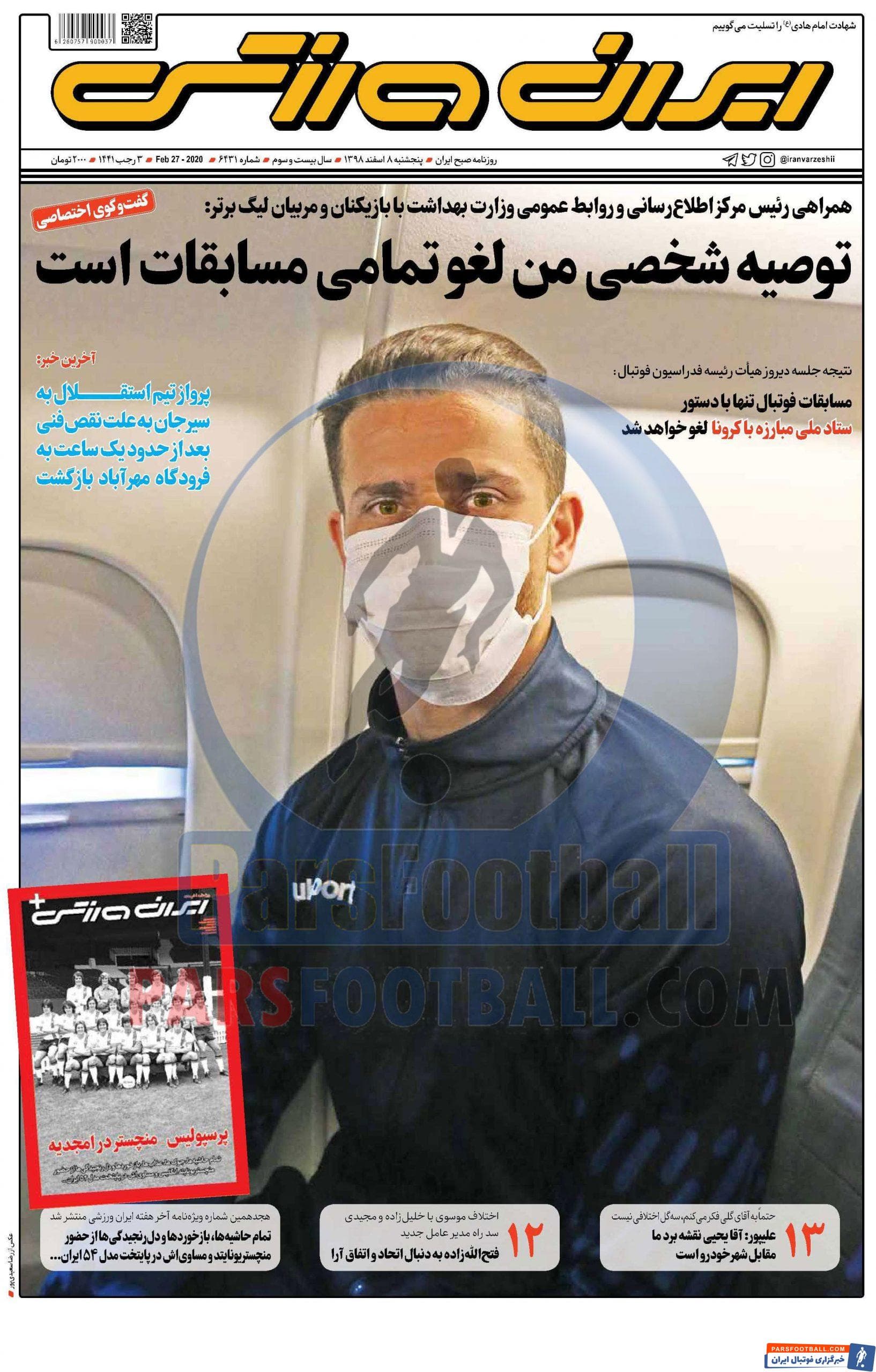 عناوین روزنامه ایران ورزشی پنجشنبه ۸ اسفند ماه به شرح زیر است :
