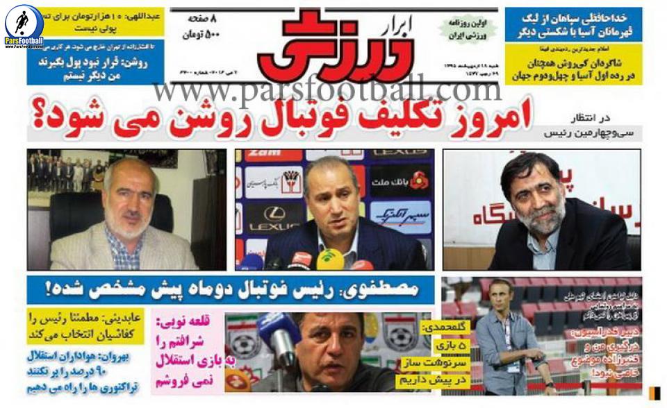 روزنامه ابرار ورزشی ۱۸ اردیبهشت |امروز تکلیف فوتبال روشن می شود؟ |مصطفوی :رئیس فوتبال دو ماه پیش مشخص شده!