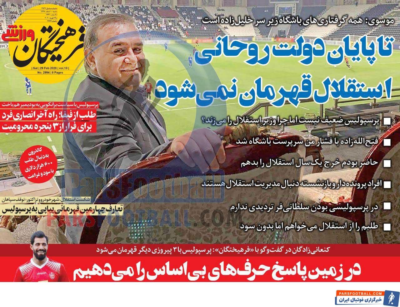 مرور عناوین مهم روزنامه فرهیختگان ورزشی شنبه 10 اسفند ماه