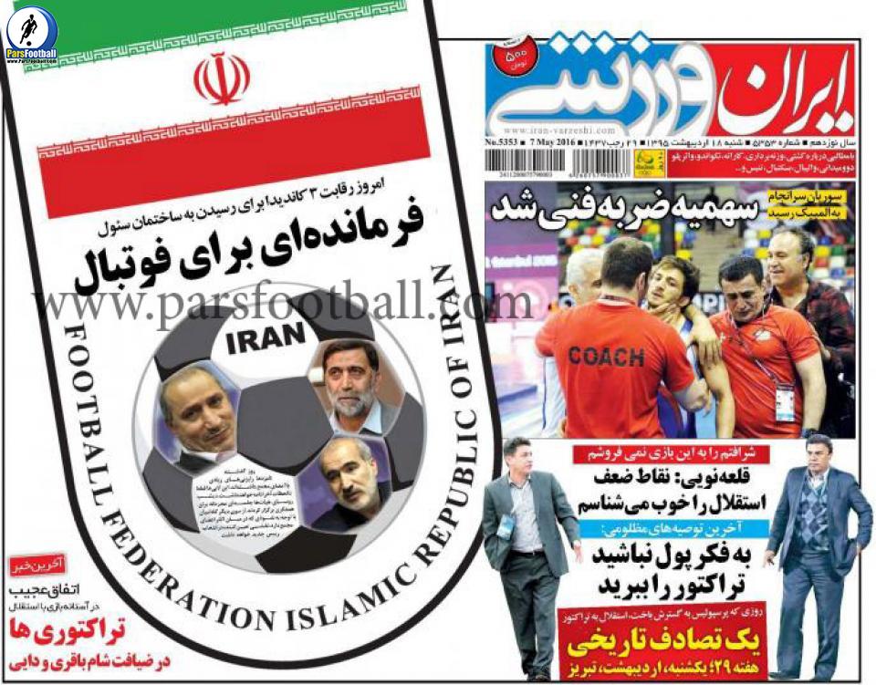 نگاهی داریم به نیم صفحه نخست روزنامه ایران ورزشی ، شنبه ۱۸ اردیبهشت .