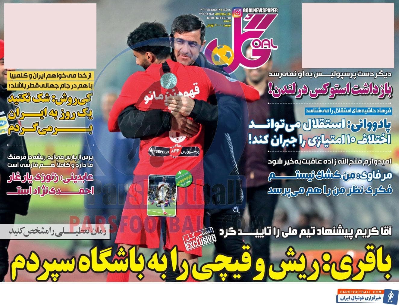 مرور عناوین مهم روزنامه گل سه شنبه 13 اسفند ماه