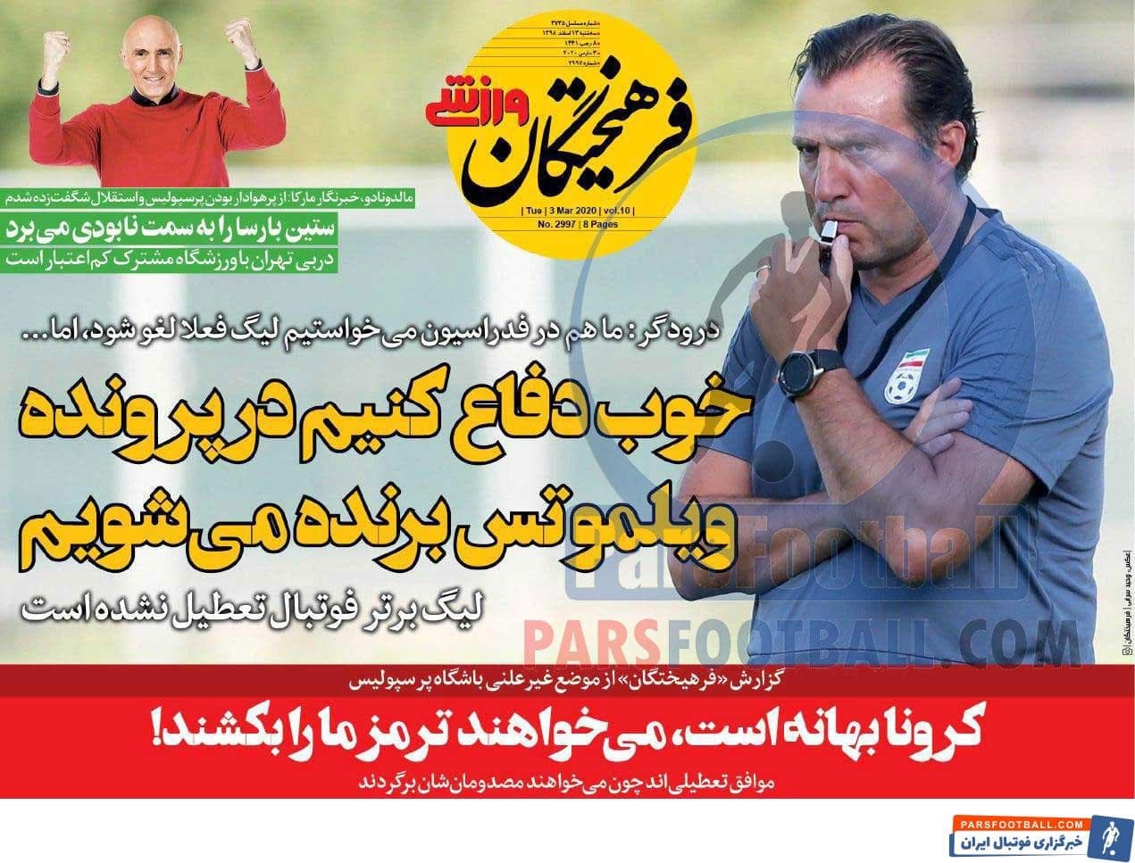 مرور عناوین مهم روزنامه فرهیختگان ورزشی سه شنبه 13 اسفند ماه