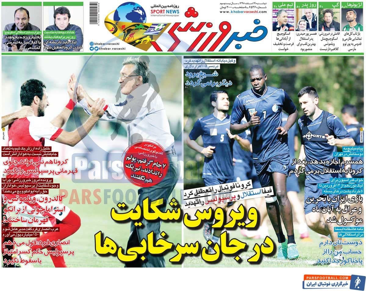 مرور عناوین مهم روزنامه خبر ورزشی دوشنبه 19 اسفند ماه