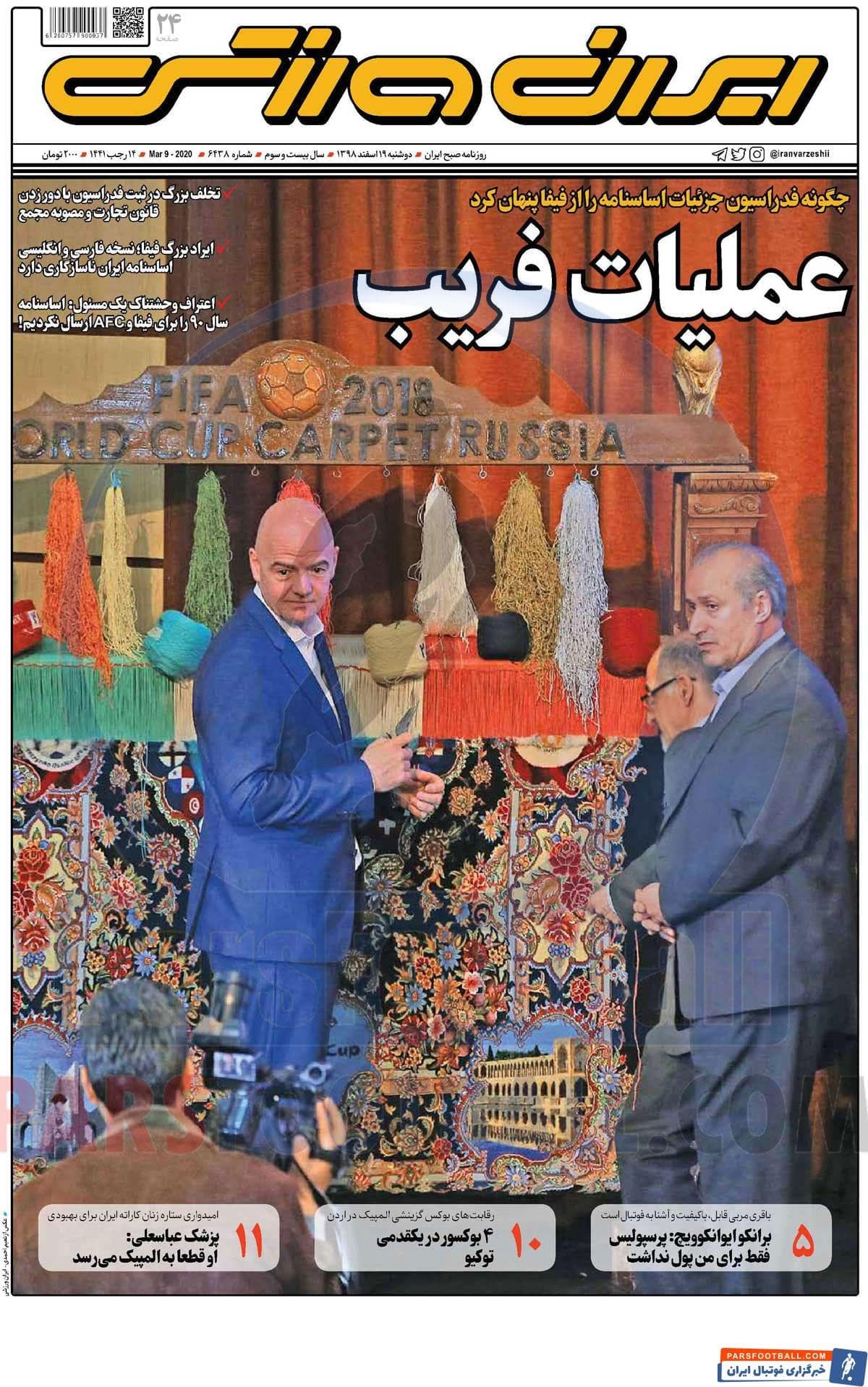 عناوین روزنامه ایران ورزشی دوشنبه ۱۹ اسفند ماه به شرح زیر است :
