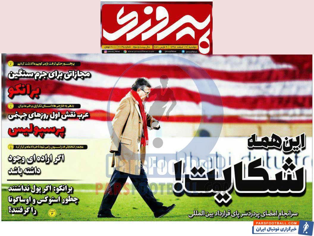 گیشه اخبار داخلی پارس فوتبال همه روزه به بررسی نشریات ورزشی می پردازد. به بررسی روزنامه پیروزی می پردازیم.
