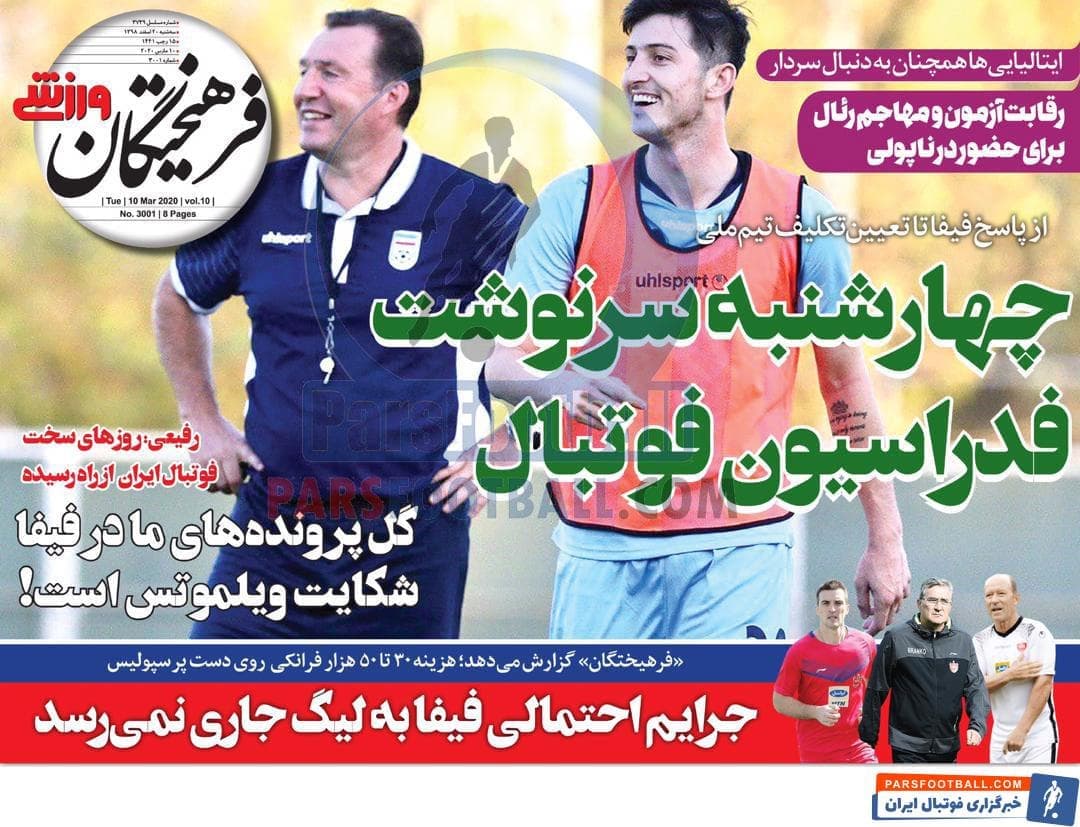 عناوین روزنامه فرهیختگان ورزشی سه شنبه ۲۰ اسفند ماه به شرح زیر است :
