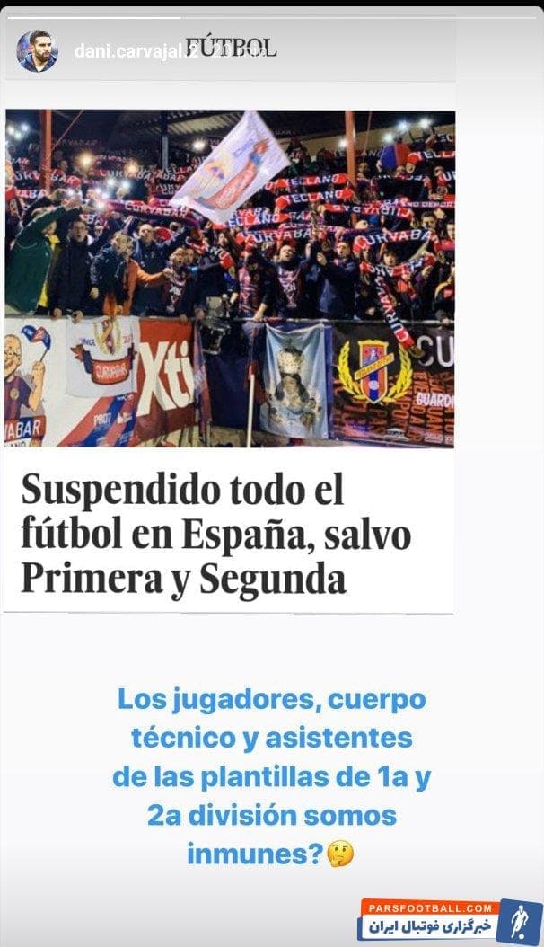 دنی کارواخال در صفحه اش نوشت: آیا ما بازیکنان ، کادر مربیگری و دستیاران در دسته اول و دوم از بیماری مصون هستیم؟