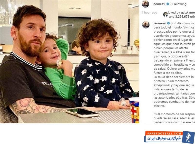 عکس ؛ پیام مهم لیونل مسی برای مبارزه با ویروس کرونا
