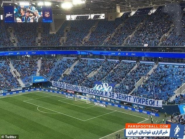 هواداران زنیت پلاکاردی به ورزشگاه آورده بودند که روی آن نوشته شده بود: