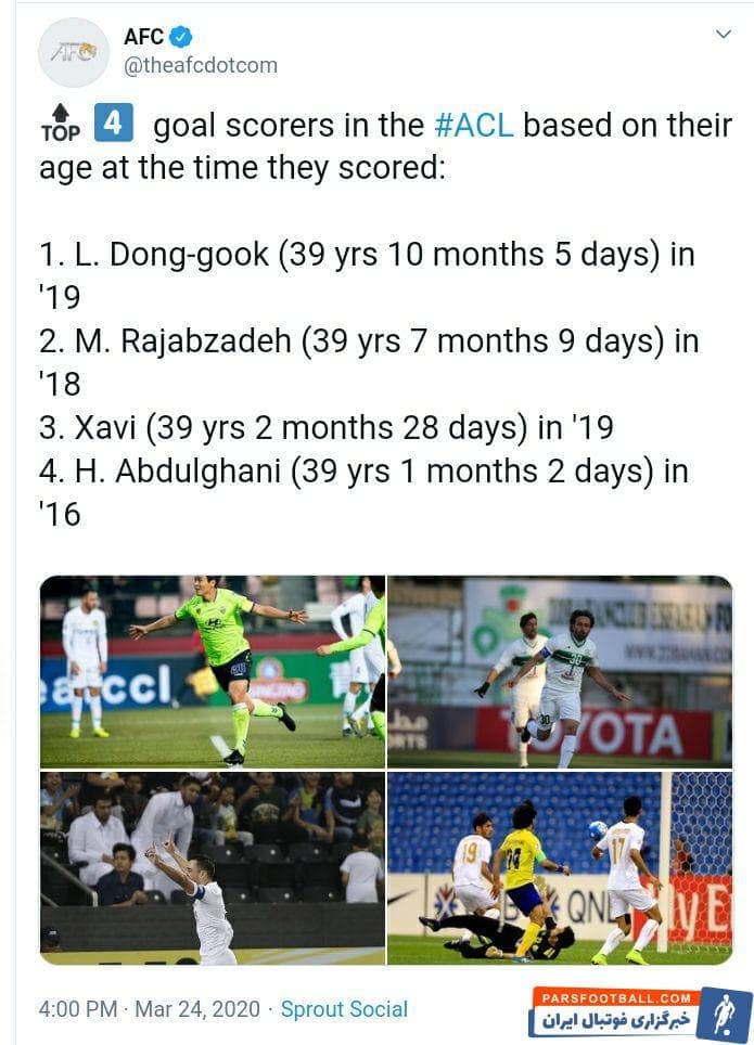 توئیتر ایافسی مسنترین گلزنان لیگ قهرمانان آسیا را در صفحه توئیتر خود معرفی کرد.