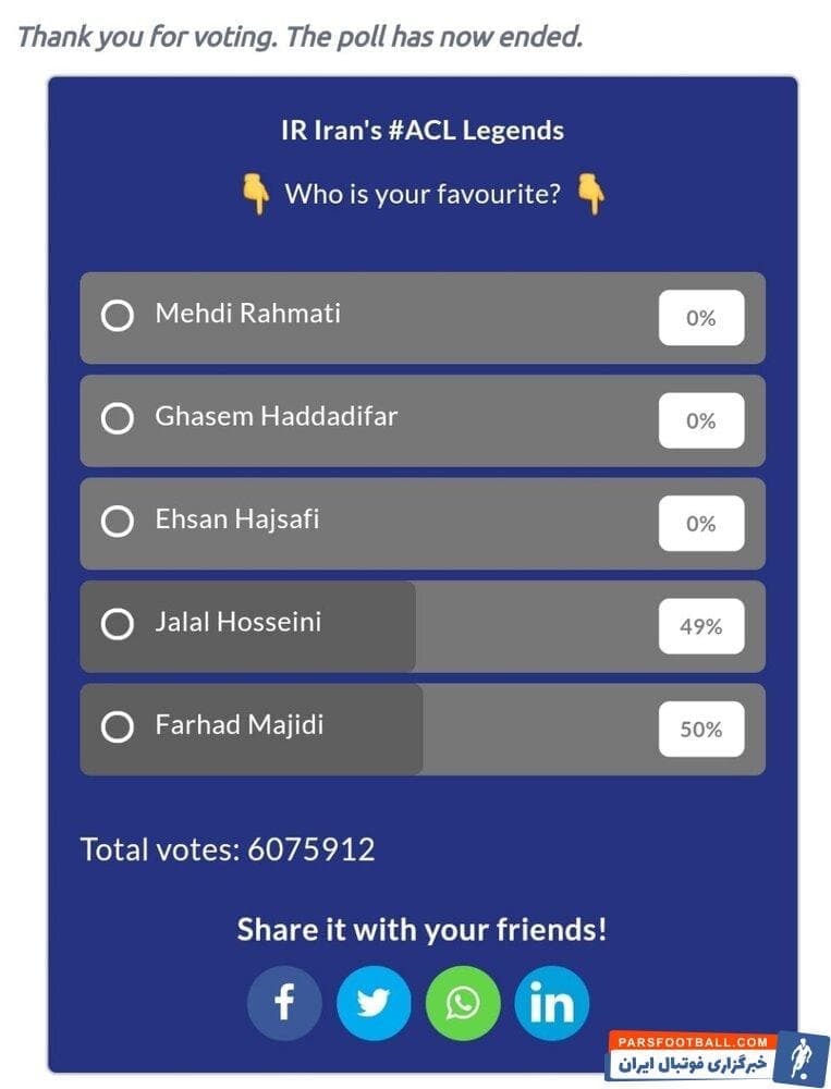 شش روز پیش بود که کنفدراسیون فوتبال آسیا یک نظرسنجی در خصوص انتخاب اسطوره ایرانی‌ها در لیگ قهرمانان ترتیب داد. این نظرسنجی تا به امروز حواشی و اتفاقات عجیبی به دنبال خود داشته. از تقلب و توهین‌های هواداران دو تیم گرفته تا اعلام سیدجلال حسینی به عنوان برنده نهایی نظرسنجی. نکته عجیب و قابل‌توجه این است که تا ظهر امروز جلال حسینی برنده این نظرسنجی بود. حسینی حتی پیام‌های تبریک زیادی هم از سوی چهره‌های سرشناسی از جمله برانکو ایوانکوویچ دریافت کرد.