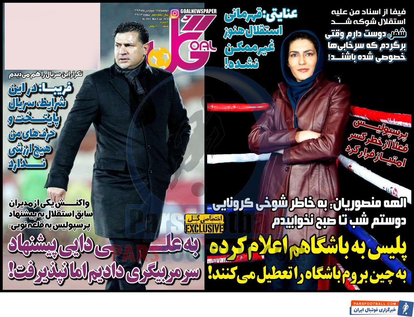 عناوین روزنامه گل دوشنبه ۱۸ فروردین ماه به شرح زیر است :