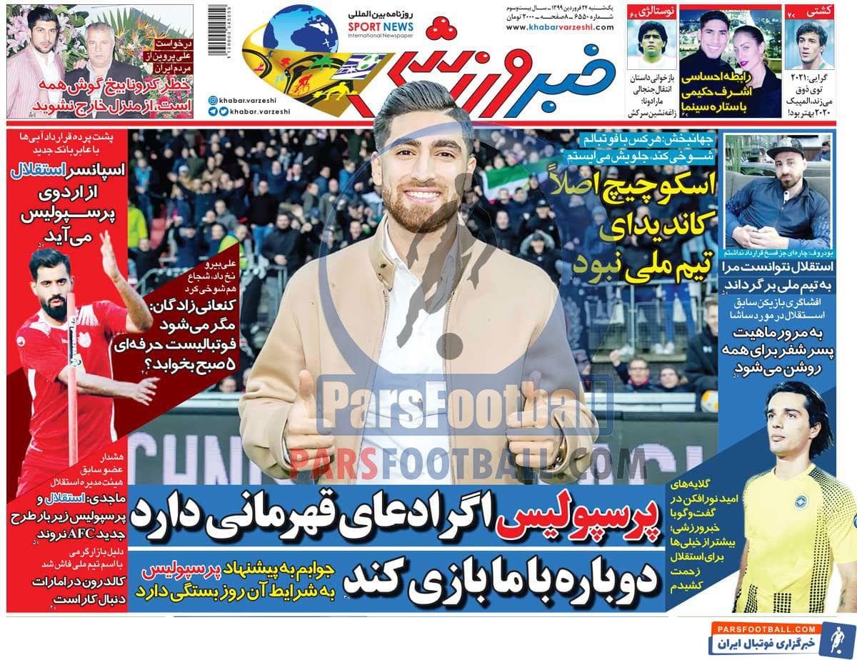 عناوین روزنامه خبر ورزشی یکشنبه ۲۴ فروردین ماه به شرح زیر است :