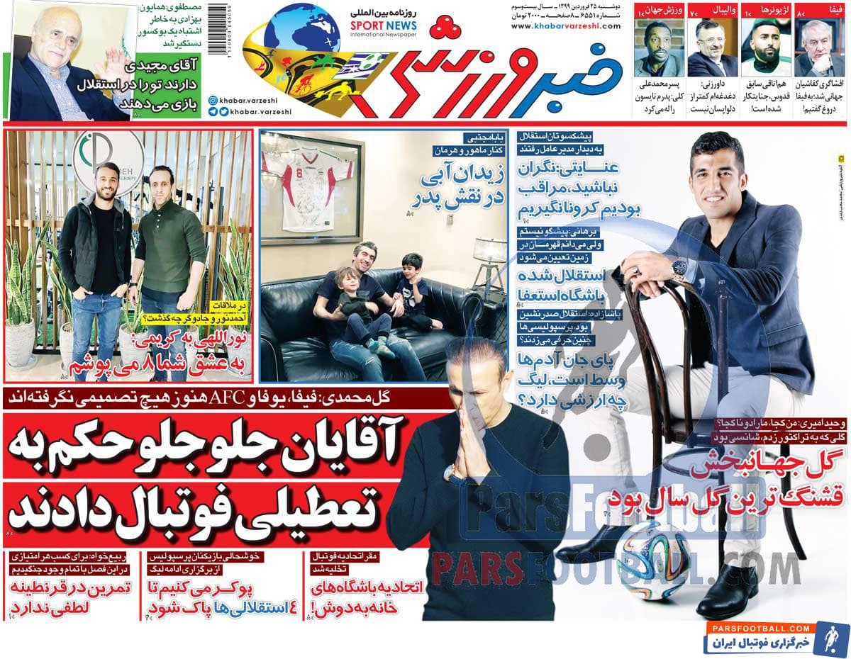 عناوین روزنامه خبر ورزشی دوشنبه ۲۵ فروردین ماه به شرح زیر است :