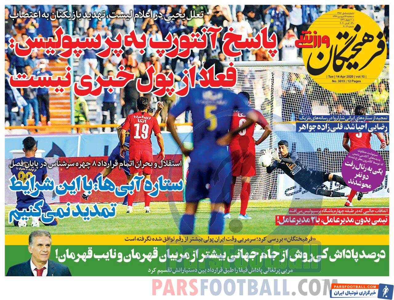 عناوین روزنامه فرهیختگان ورزشی سه شنبه ۲۶ فروردین ماه به شرح زیر است :