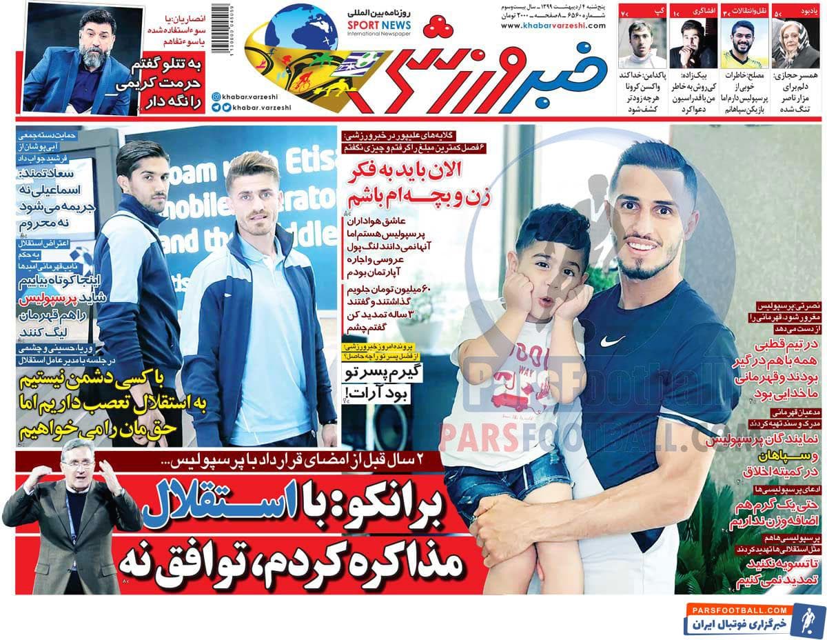 عناوین روزنامه خبر ورزشی پنجشنبه ۴ اردیبهشت ماه به شرح زیر است :