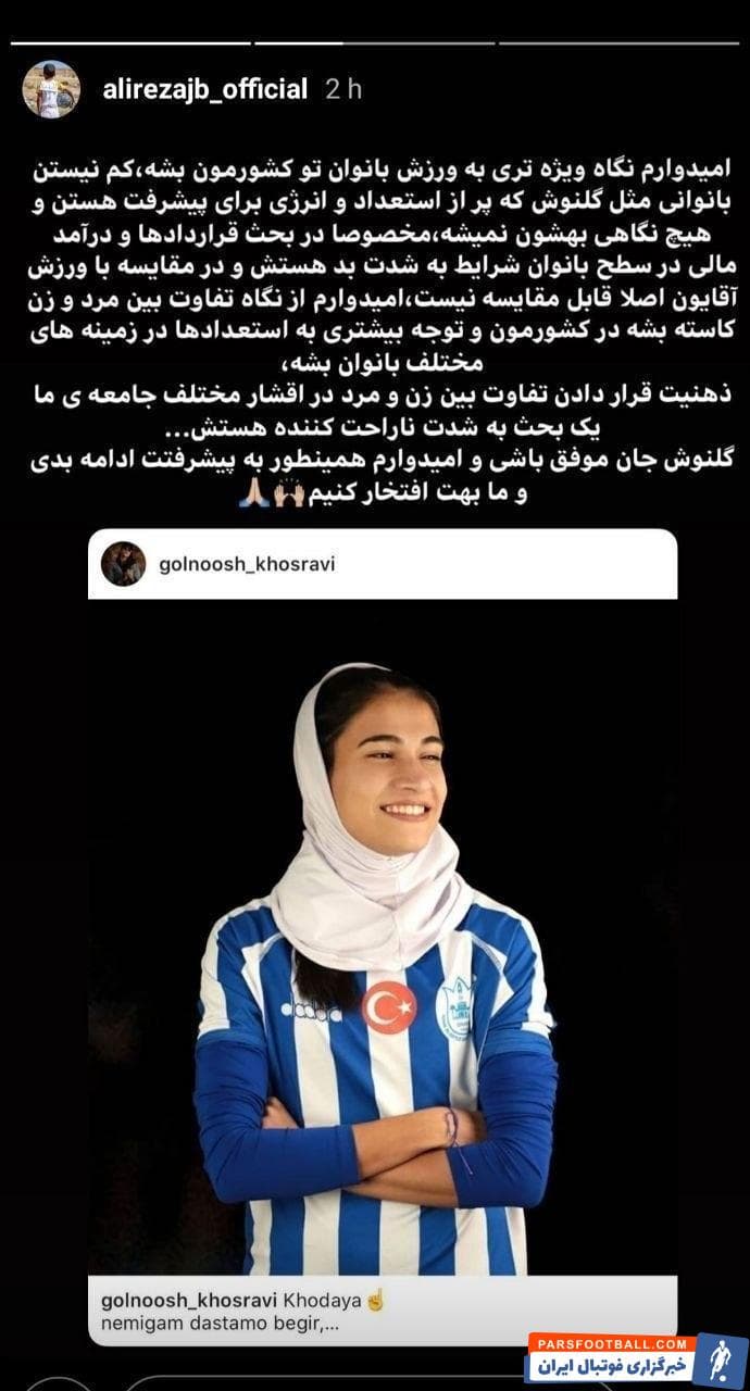 استوری تکان دهنده علیرضا جهانبخش برای یک بانوی فوتبالیست