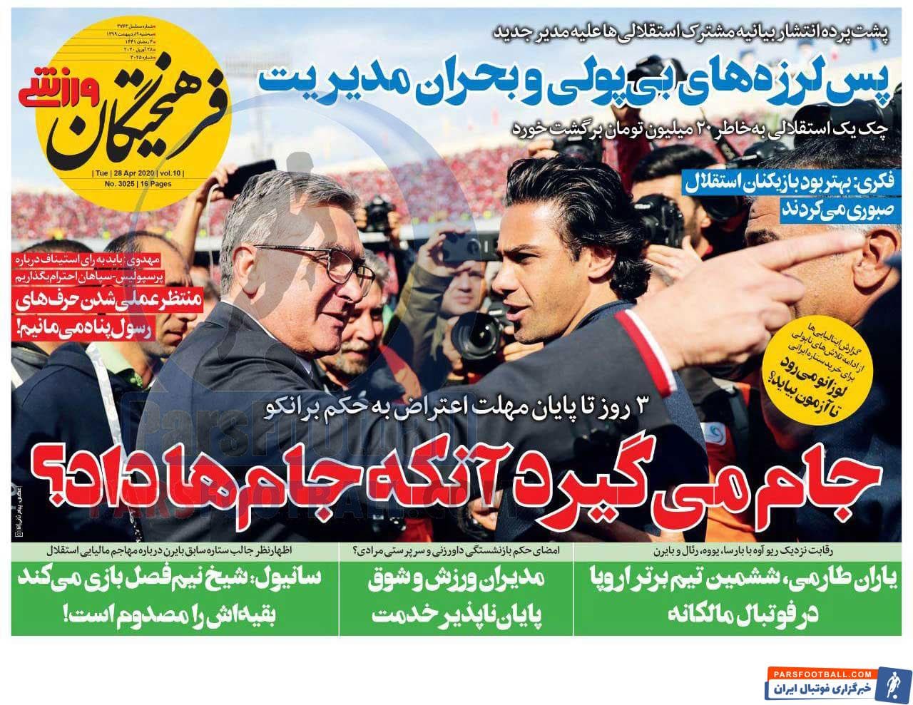 عناوین روزنامه فرهیختگان ورزشی سه شنبه ۹ اردیبهشت ماه به شرح زیر است :