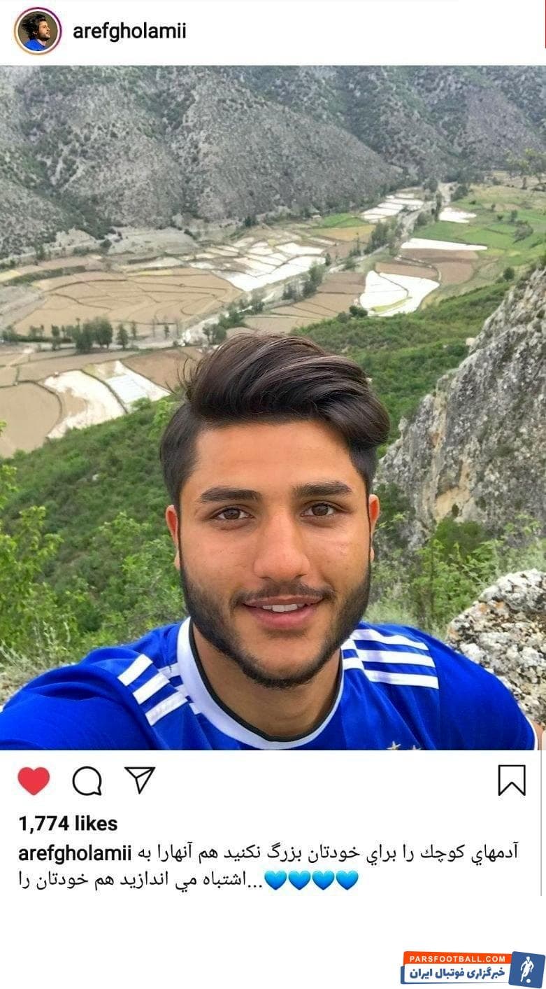 عارف غلامی ، مدافع جوان تیم فوتبال استقلال که چندی پیش با انتشار پیامی از هم‌تیمی خود حمایت کرده بود، یک بار دیگر با انتشار پیامی در فضای مجازی که در ادامه می بینید خبرساز شد.