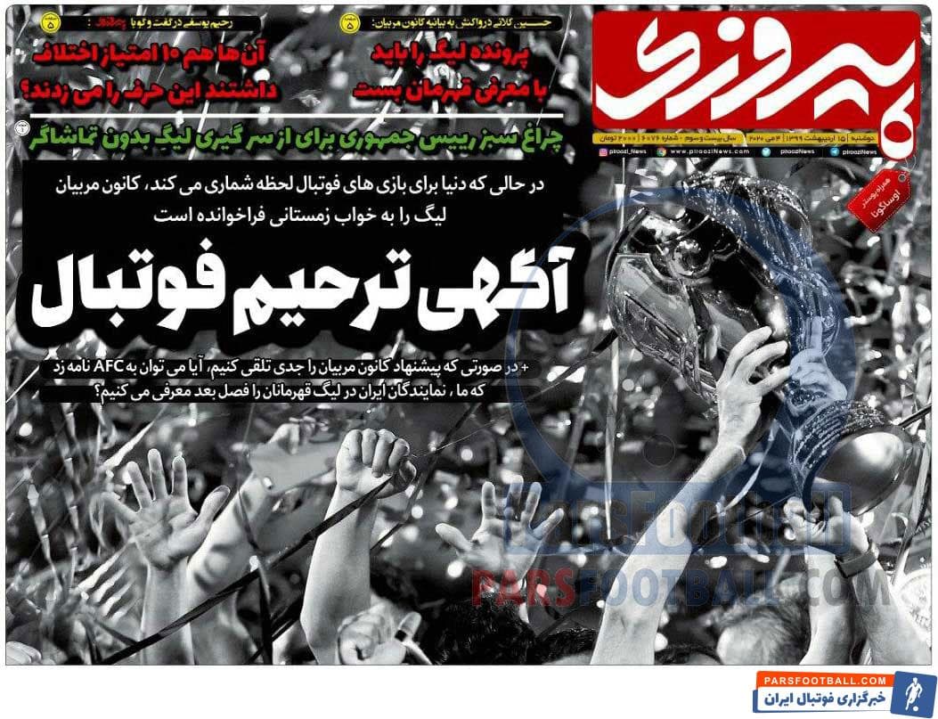 عناوین روزنامه پیروزی دوشنبه ۱۵ اردیبهشت ماه به شرح زیر است :
