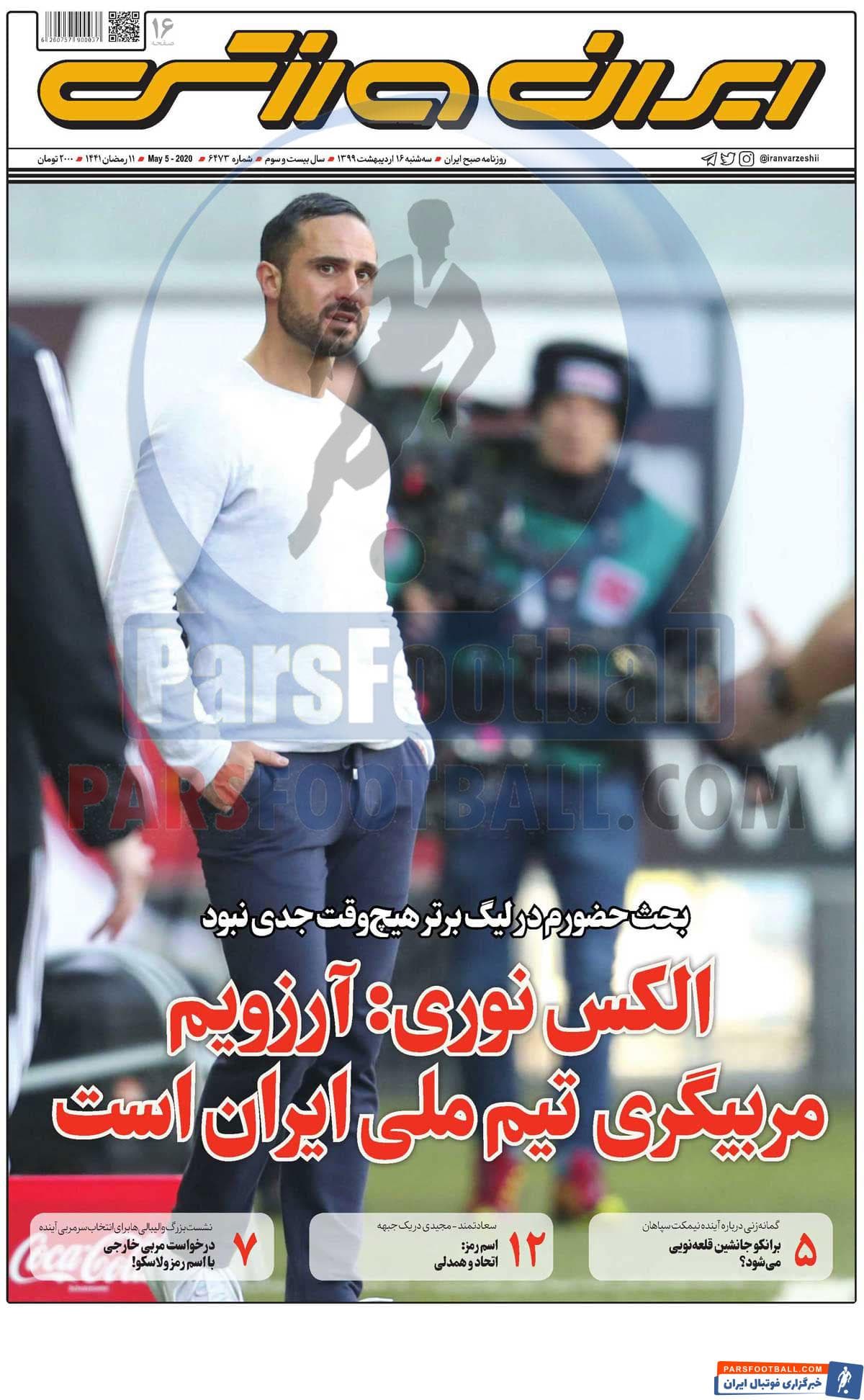 عناوین روزنامه ایران ورزشی سه شنبه ۱۶ اردیبهشت ماه به شرح زیر است :
