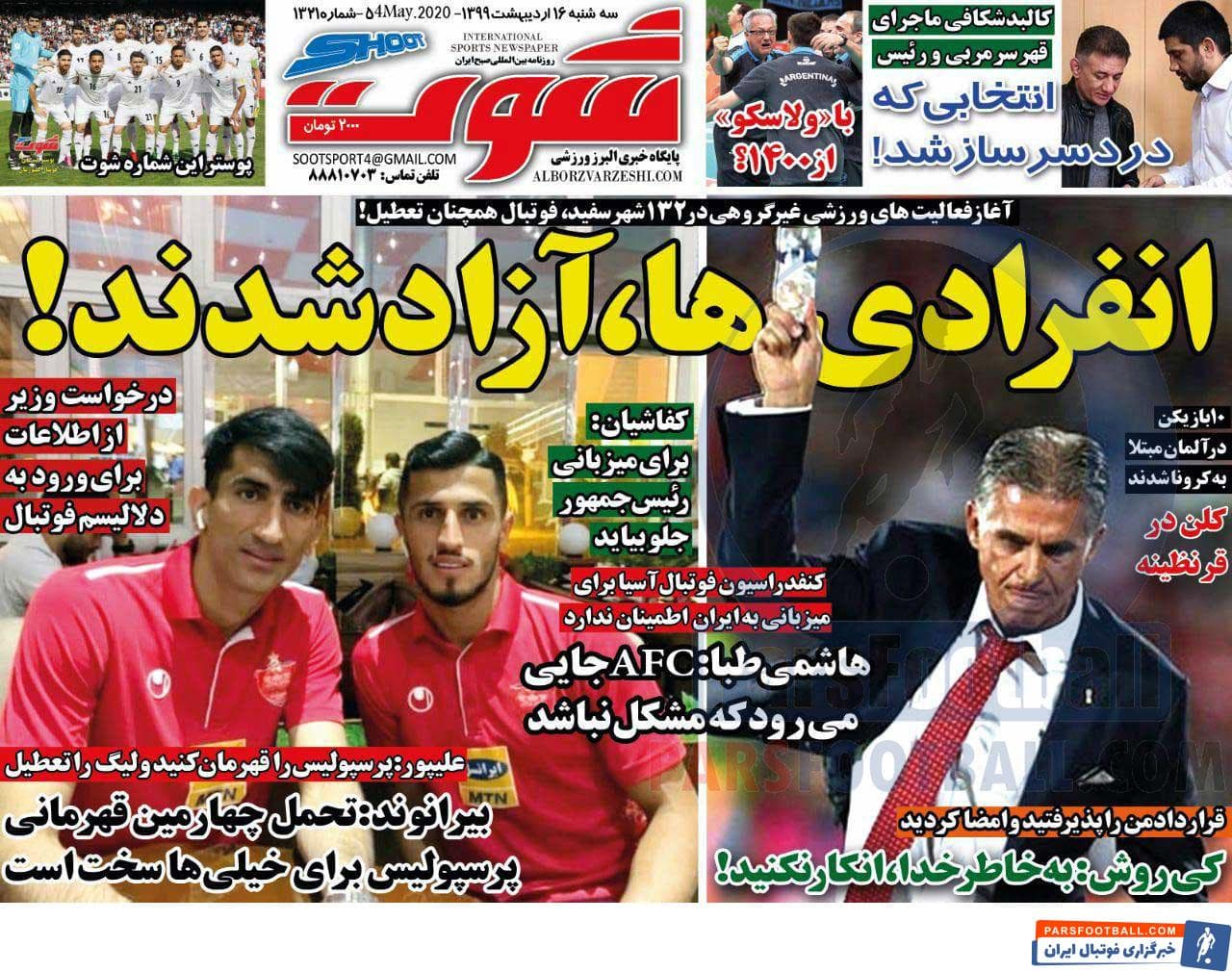 عناوین روزنامه شوت سه شنبه ۱۶ اردیبهشت ماه به شرح زیر است :