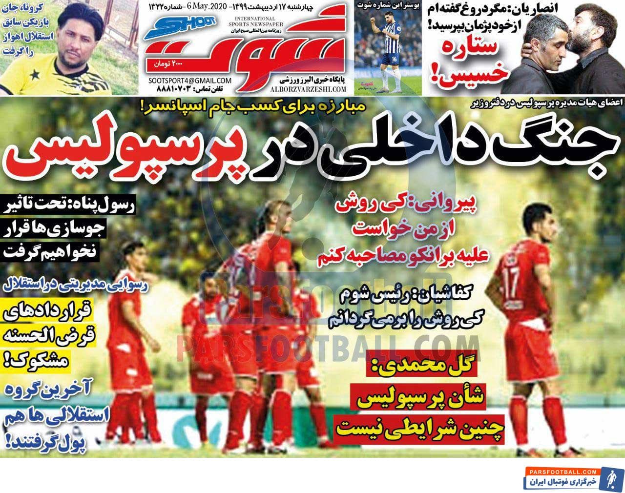 عناوین روزنامه شوت چهارشنبه ۱۷ اردیبهشت ماه به شرح زیر است :
