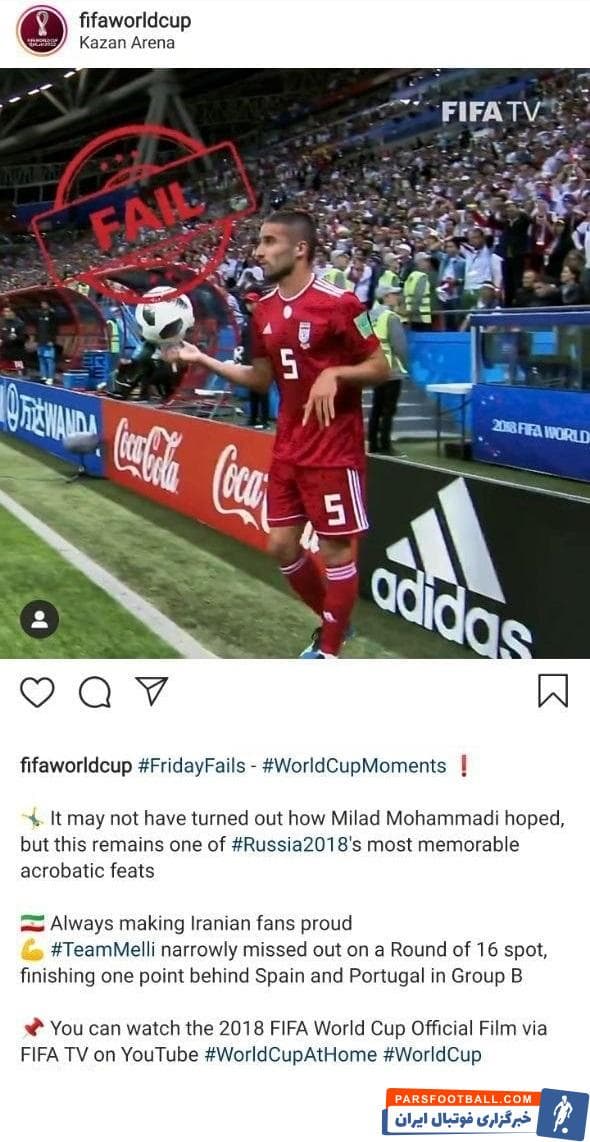 صفحه اینستاگرام فیفا پرتاب اوت عجیب میلاد محمدی را بازنشر کرد