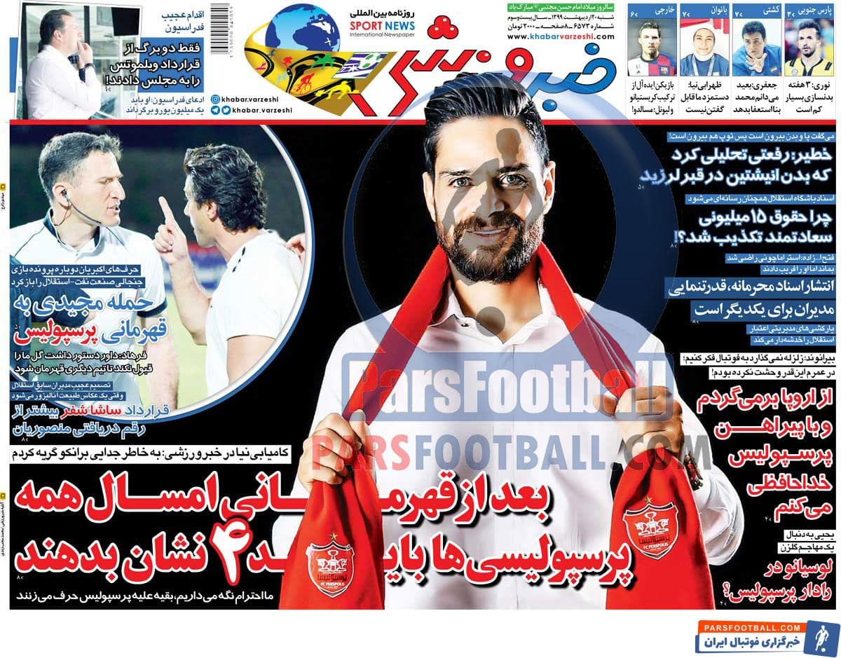 عناوین روزنامه خبر ورزشی شنبه ۲۰ اردیبهشت ماه به شرح زیر است :