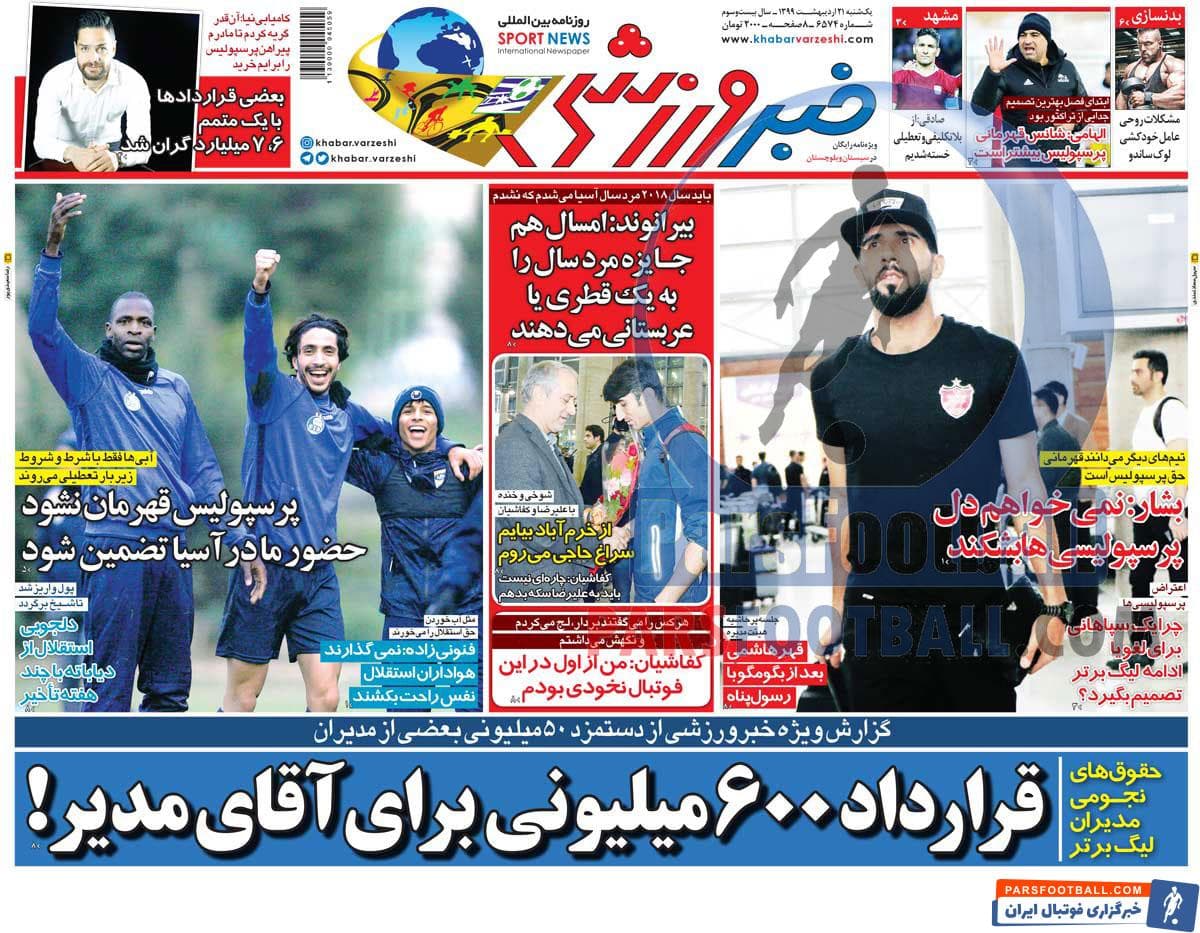 عناوین روزنامه خبر ورزشی یکشنبه ۲۱ اردیبهشت ماه به شرح زیر است :