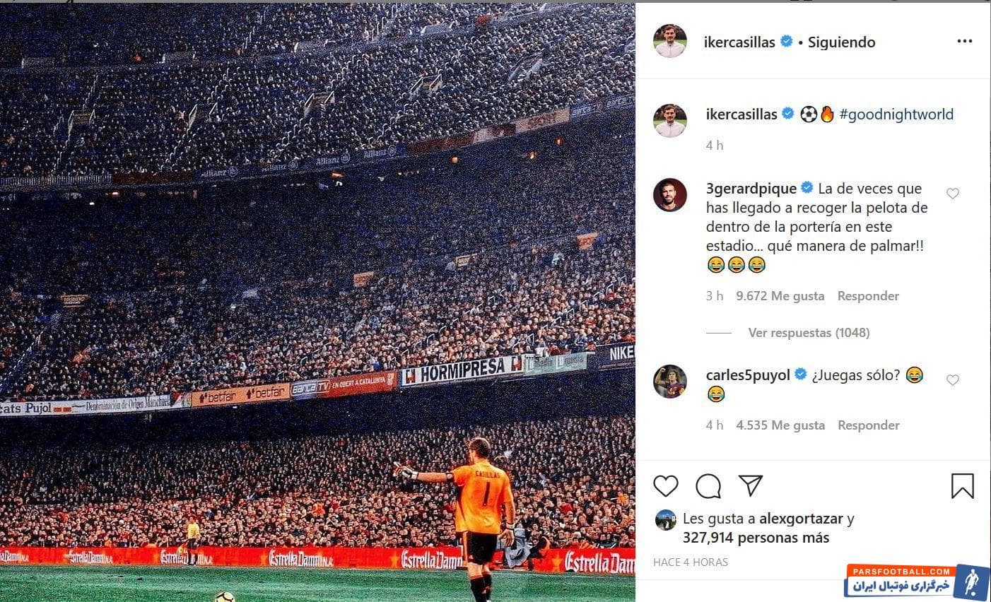 ایکر کاسیاس دروازه‌بان سابق رئال مادرید برای شب به خیر گفته به هوادارانش پستی منتشر کرده و در آن از عکسی استفاده کرد که بسیار خبرساز شد. البته علت مورد توجه قرار گرفتن پست کاسیاس پاسخی بود که جرارد پیکه ، ستاره بارسلونا به آن داد.