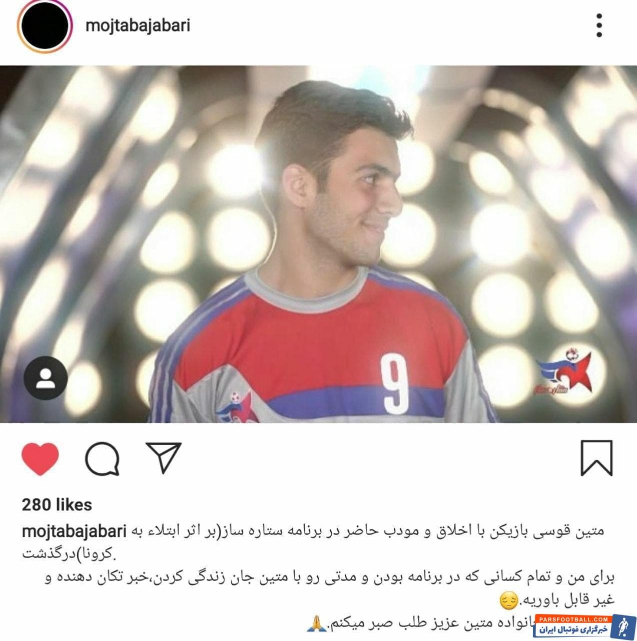جباری ساعتی پیش با انتشار پستی در صفحه شخصی اینستاگرامش این اتفاق را غیرقابل باور دانست و برای خانواده متین قوسی طلب صبر کرد.
