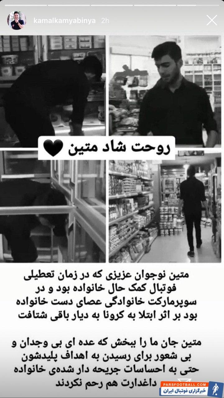 کمال کامیابی نیا هافبک تیم فوتبال پرسپولیس با انتشار متنی کنایه آمیز به فوت متین قوسی نوجوان فوتبالیست بر اثر ویروس کرونا واکنش نشان داد: