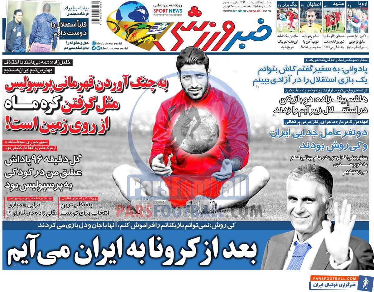 عناوین روزنامه خبر ورزشی دوشنبه ۲۹ اردیبهشت ماه به شرح زیر است :