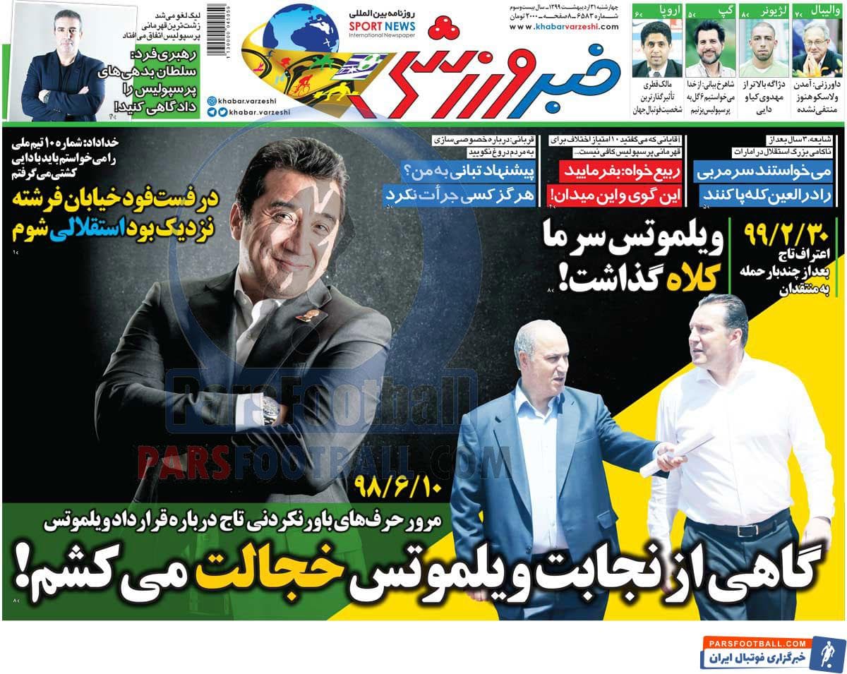 عناوین روزنامه خبر ورزشی چهارشنبه ۳۱ اردیبهشت ماه به شرح زیر است :
