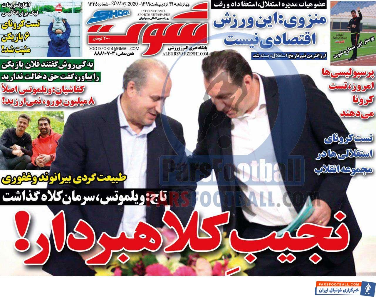 عناوین روزنامه شوت چهارشنبه ۳۱ اردیبهشت ماه به شرح زیر است :
