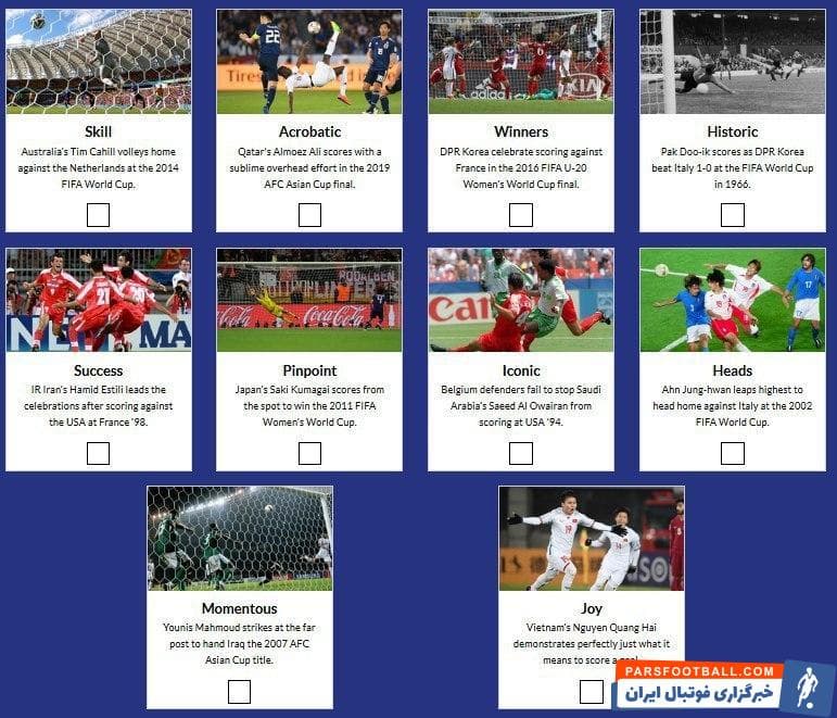 سایت رسمی کنفدراسیون فوتبال آسیا با انتشار ۱۰ عکس از برترین و خاطره انگیزترین تصاویر بازیکنان تیمهای ملی این قاره، از مخاطبانش خواسته در نظر سنجی مربوط به انتخاب برترین عکس شرکت کنند.