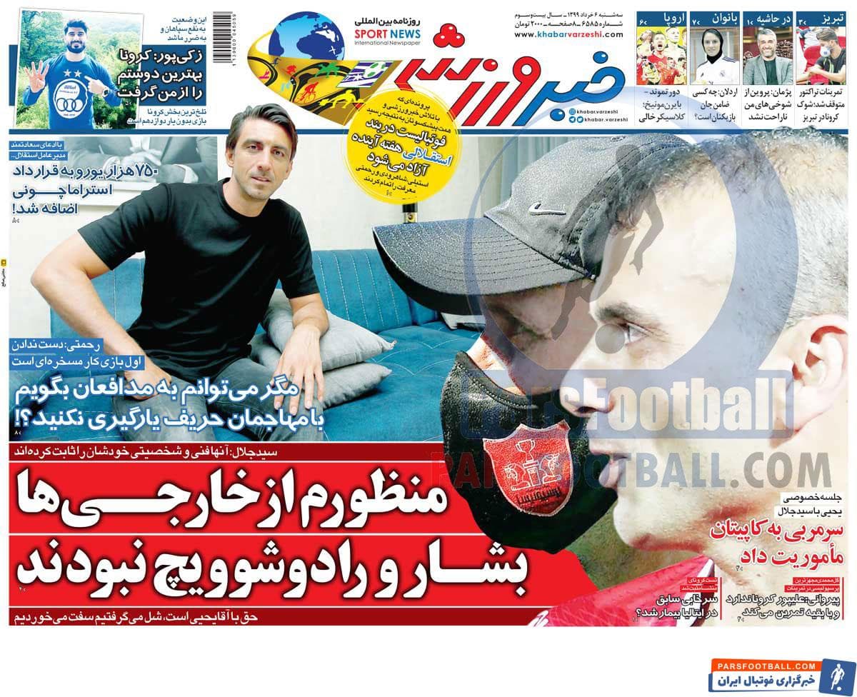 عناوین روزنامه خبر ورزشی سه شنبه ۶ خرداد ماه به شرح زیر است :