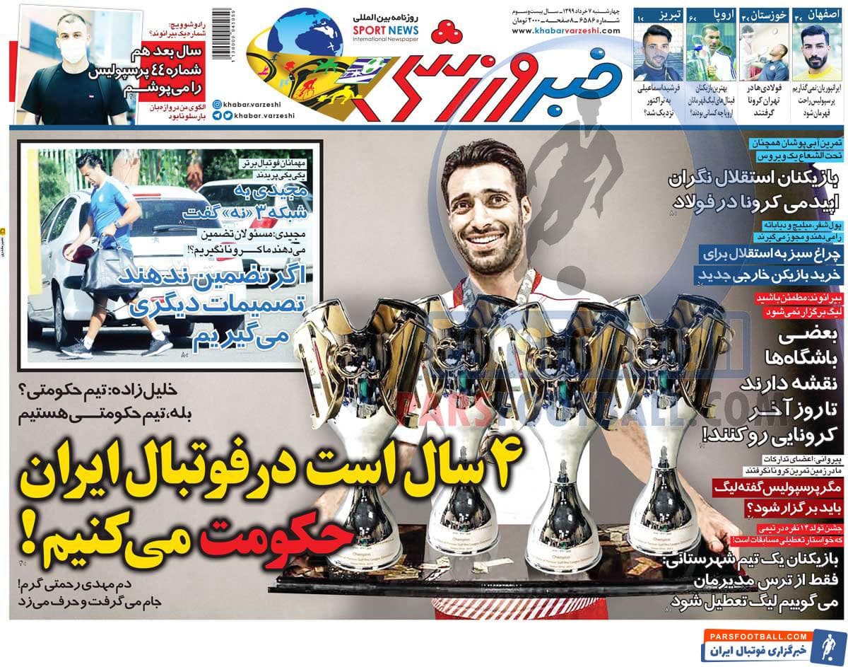 مرور عناوین مهم روزنامه خبر ورزشی چهارشنبه 7 خرداد ماه